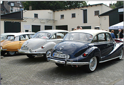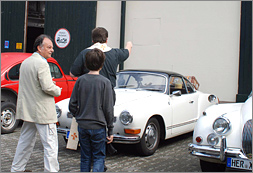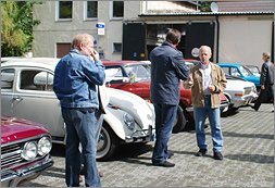 Trotz des eher mässigen Wetters am Samstag, dem 23. August waren noch 18 Fahrzeuge vor der Oldtimerhalle zur Fahrzeugsegnung erschienen. Vikar Severin von der Herz Jesu Gemeinde bat die kleine Versammlung zu einem kurzen Wortgottesdienst und erinnerte in seiner Ansprache daran, dass dieser alte Brauch durchaus nicht nur "von gestern" sei. Nach der Segnung der einzelnen Fahrzeuge, die alle einen Christophorus Aufkleber erhielten, ergab sich ein geselliges Beisammensein, wobei Vikar Severin mit grossem Interesse auf jeden einzelnen Teilnehmer inkl. seines Fahrzeuges zuging.