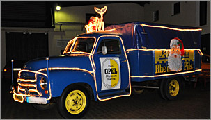 Bereits auf dem Hof wurde unübersehbare Weihnachtsstimmung verbreitet. Das Opel-Museum Herne hatte einen "Weihnachtstruck" (Opel Blitz, Bj. 1959) mit voller Beleuchtung aufgestellt.