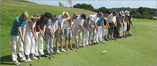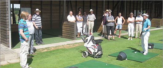 Auf Initiative unseres Oldtimer-Freundes Heinrich Beestermöller absolvierte das Hallenteam am 16.07.2010 einen „Schnupperkurs“ im Golfclub von Castrop-Rauxel. Nach einer kurzen Einführung durch den Profitrainer ging es zunächst zur Driving-Range, wo wir ca. 1 Stunde Abschläge geübt haben. Hierbei zeigte sich das bereits, dass das Golfspielen nicht in wenigen Minuten zu erlernen ist. Weiter ging es sodann nach einer kurzen Erfrischungspause auf das Putting-Green. Hierbei konnten sämtliche Teilnehmer zeigen, was sie drauf hatten. Nach einer kurzen Einspielung wurden Pärchen gebildet, die jeweils gegeneinander antraten. Am Ende stellte sich heraus, dass unser Nachwuchstalent Luisa Bruch die Nase vorn hatte. Im Anschluss daran haben wir bei Kaffee und Kuchen den herrlichen Sommernachmittag ausklingen lassen. Eine gelungene Abwechslung; daher nochmals herzlichen Dank an den Ausrichter Heinrich Beestermöller.