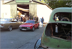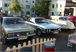 Oldtimerfahrzeuge vor unserer Halle ein. Hinzu kamen etliche Zuschauer, so