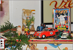 Am 3. Adventssonntag 2011 fanden sich 57 Erwachsene und 10 Kinder in der Halle der Herner Oldie´s ein, die zuvor schön geschmückt wurde. Insbesondere das liebevoll gestaltete Schaufenster der Firma „Spielwaren Ritter“ im Stil der 50-iger Jahre begeisterte sowohl große und kleine Zuschauer. Das zeitgenössische Spielzeug hatten beigesteuert Dr. Michael Bruch (Ausstellungsriesenrad der Firma Märklin), Andrea Theis (Steifftiersammlung sowie Zubehör) und Frank Brom (Blechspielzeug).