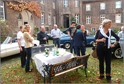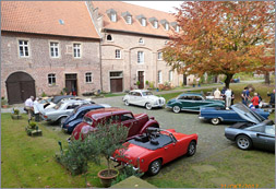 Beim Kaffee am Samstagmorgen waren mehrere Oldtimerfreunde willens und bereit, an der Ausfahrt teilzunehmen, obwohl parallel dazu auch andere Oldtimerevents im Ruhrgebiet anstanden. Wir entschlossen uns daher, am 21.10.2012 um 13.00 Uhr eine Ausfahrt zu veranstalten, wobei sich Wolfgang Bruch daran erinnerte, dass Herr Bodo Möhrke bei einem Besuch der Oldtimerhalle signalisiert hatte, dass das Schloss Bladenhorst jederzeit zu einem Aufenthalt zur Verfügung stehe. Auch insoweit ist unverzüglich Kontakt aufgenommen worden mit Herrn Möhrke (vgl. Bericht in der Zeitschrift Oldtimermarkt 10/2012, S. 154, 50 Jahre MGB). Herr Möhrke signalisierte uns ebenfalls, dass wir kommen könnten, so dass der Ausfahrt letztlich nichts mehr im Wege stand.