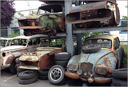 Autos aus den Jahren der Wirtschaftswunderzeit sind genauso aufzufinden wie Mantas aus den siebziger Jahren. Der Inhaber, Herr Martin Degener, begrüßte uns freundlich und stellte seine Sammlung vor, die er in vielen Jahren zusammengetragen hatte.