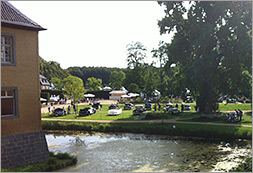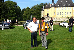 Spontan hatten wir uns entschlossen, am 03.08.2014 die Classic Days im Schloss Dyck zu besuchen. So begaben sich Eckart und Barbara Pöhlmann, Martin Metzler und Wolfgang Bruch auf das sehr schön gelegene Parkgelände. Wir hatten das Glück, einen Parkplatz in den vorderen Reihen zu erhalten. Am Sonntagmorgen war der Zuschauerandrang noch übersichtlich, so dass wir genug Ruhe und Gelegenheit hatten, uns die außerordentlich schönen Ausstellungsstücke anzuschauen. Dies galt insbesondere für die "Juwelen" im Schlossinnenhof als auch im direkt anschließenden Park. Die Atmosphäre war stimmig, schnell trafen wir Bekannte. Da wir Goodwood recht gut kennen, war für uns sofort klar, dass die Veranstaltung in die gleiche Richtung zielt. Es kann sich nur noch um wenige Jahre handeln, dann ist die Größe des Goodwood Festivals erreicht.