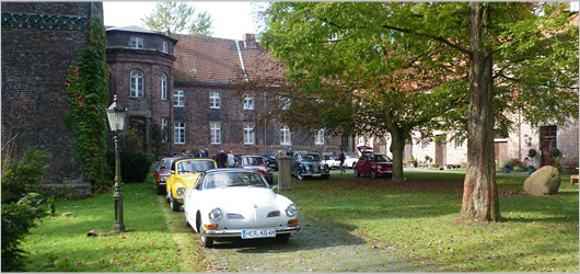 Nach einem Aufenthalt von ca. 1/2 Stunde haben wir uns dann über Ahsen, Datteln, Waltrop in Richtung Castrop-Rauxel bewegt, wo wir gegen 12.30 Uhr auf dem Schloss Bladenhorst eingetroffen sind. Dort erwartete uns bereits der Burgherr Herr Bodo Möhrke. Nach einer kurzen Führung durch das alte Wasserschloss haben wir den Vormittag bei leckerem Wiacker Kuchen und Kaffee ausklingen lassen. Eine super Fahrt, super Atmosphäre, eine tolle Idee das noch so kurzfristig umzusetzen!