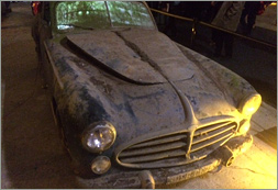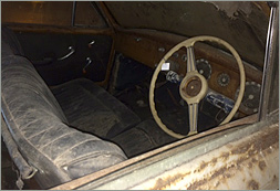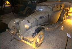 Dort erwartete uns zunächst Vorbesichtigung der Fahrzeuge. Diese waren in einer abgedunkelten Halle aufgestellt, wobei hierzu klassische Klaviermusik gespielt wurde. Die Art und Weise der Darstellung war bereits einzigartig, gleichwohl musste man feststellen, dass die allermeisten der Autos völlig verrottete Vehikel waren, teilweise nicht komplett. Sie standen nur mühsam auf behutsam aufgepumpten Rädern.