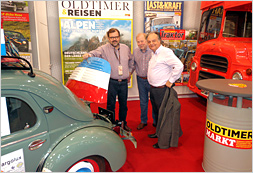 Sodann haben wir einen Rundgang über die Messe vorgenommen, wobei in diesem Jahr der Borgwardstand nicht so beeindruckend war, wie dies in der Vergangenheit der Fall war. Gleichwohl ist ein Kinomotiv aus den 50iger Jahren immer wieder sehenswert. Am Stand der Fachzeitschrift Oldtimermarkt trafen wir auf den Chefredakteur Peter Steinfurth, mit dem wir kurz über das gemeinsame Hobby fachsimpeln konnten.