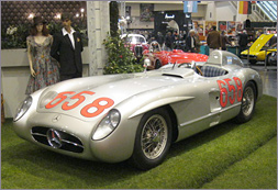 Dies ist die Zukunft, leider bleibt dabei die persönliche Leidenschaft und das Fachgespräch auf der Strecke. Ansonsten ist die diesjährige Techno Classica geprägt von hochpreisigen Porsche-Fahrzeugen. Eine derartige Fülle von entsprechenden Fahrzeugen hat der Unterzeichner noch auf keiner Veranstaltung gesehen. Die Ausstellung am S.I.H.A.-Stand über die Mille Miglia zeigte wirklich hervorragende Rennsportfahrzeuge der 50iger Jahre, wobei besonders der Mercedes 300 SLR ins Auge sticht, der von Stirling Moss im Jahre 1955 auf der Mille Miglia gefahren wurde. Wir hatten dieses legendäre Rennsportfahrzeug im letzten Jahr auf der Mille Miglia live gesehen, wobei es im Zieleinlauf nochmals durch Stirling Moss gesteuert wurde.