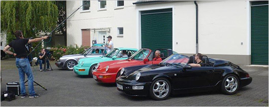 Gegen 13.00 Uhr trafen rund 15 Porschefahrzeuge vor unserer Oldtimerhalle ein, weil dort Filmaufnahmen für einen Trailer der örtlichen Porscheszene gemacht werden sollten. Das Porscheteam war gut vorbereitet. Man hatte extra ein Kamerateam mitgebracht, das professionell Filmaufnahmen auf unserem Gelände anfertigte. Die Porschefahrzeuge wurden in unterschiedlichen Konstellationen aufgestellt, es wurden Bewegungsfahrten auf der Mont-Cenis-Straße durchgeführt, zum Schluss wurde ein Interview in unserer Halle gemacht. Das Ganze war natürlich begleitet von einem geselligen Beisammensein. Extra zu diesem Anlass war eine Porschetorte angefertigt worden, es gab ruhrgebietstypisch Currywurst und Getränke. Auch nach den Filmaufnahmen, die rund 5 Stunden in Anspruch nahmen, fanden sich die Porschefahrer nebst Begleitung noch zu einem geselligen Beisammensein an unserer Halle ein.