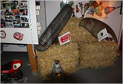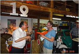 Einen besonderen Gag hatte sich der Donnerstagsstammtisch von der Castroper Straße ausgedacht: Er brachte eine Zweitacktzapfsäule von Aral mit sowie eine Straßenverkehrsschild, welches eine 10 zeigte, versehen mit allen Unterschriften der Stammtischmitglieder. Diese Gegenstände sollen einen Ehrenplatz in unserer Halle haben, wir haben uns wirklich sehr darüber gefreut. Auch bei den Dekorationen waren alle hilfreich und brachten Exponate mit, sei es alte Kotflügel, Strohballen, eine M&M Werbefigur, Luftballons mit einer 10, einer Musikbox aus den fünfziger Jahren usw.