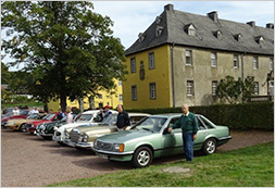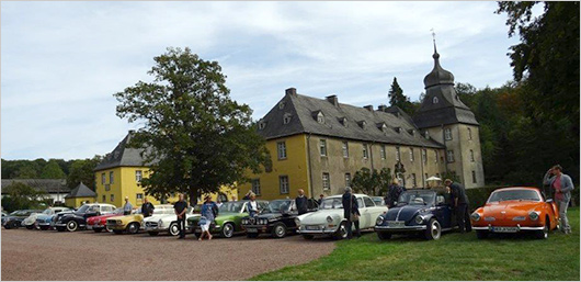 20 Oldtimerfahrzeuge mit insgesamt 43 Personen begaben sich am 16.09.2018 in das schöne Sauerland. Ziel unserer Sternfahrt war das Schloss Melschede in der Nähe des Sorpesees. Jeder der Teilnehmer konnte die Anfahrt so gestalten, wie er dies für richtig hielt. Allerdings sollten alle Teilnehmer um 12.00 Uhr sich am Schloss einfinden. Dies klappte super, so dass wir dort komplett um 12.00 Uhr eingetroffen waren. Wir hatten ein Picknick vorbereitet um Schlossgarten, welches angesichts der herrlichen Wetterverhältnisse und Temperaturen von allen Teilnehmern genutzt wurde: Alle hatten Tische und Stühle mitgebracht, ausreichend Verpflegung, einen Plattenspieler, Bocciaspiel etc.
