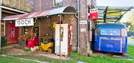 Ziel war jetzt die in Goch gelegene Viller Mühle. Dort erwartete uns Kaffee und Kuchen und wir konnten sodann das gesamte Außengelände und die Sammlung des Herrn Bömler besichtigen.