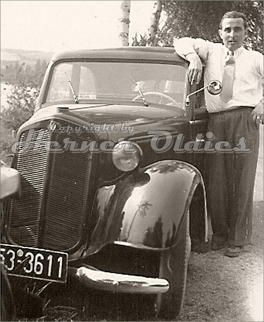 Bei der obigen Fotografie handelt es sich um einen DKW F5 Reichsklasse in der Farbe weinrot. Das Bild zeigt den stolzen Besitzer Josef Eikerling im Jahre 1952 in Altenbeken. Es handelt sich um sein erstes Fahrzeug nach dem Krieg.