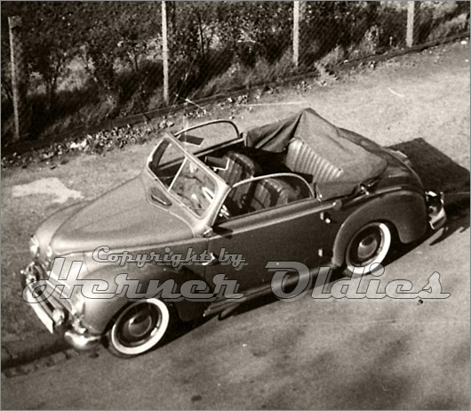 Ein ganz seltenes Exemplar ist im Jahre 1958 auf der Adalbertstraße in Herne aus einem Fenster fotografiert worden. Es handelt sich um einen Ford Taunus Cabrio Limousine von Deutsch. Das Fahrzeug hatte eine grüne Farbe und war mit Weißwandreifen versehen. Es ist seinerzeit in gebrauchtem Zustand für einen Preis von 1.300,00 DM (!) nach Karlsruhe gegangen. Das Bild entstammt der Sammlung von Manfred von Rüden.