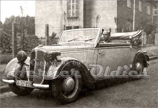 Einen DKW F8 Luxus zeigt dieses Foto, welches uns Herr von Rüden aus Herne zur Verfügung gestellt hat. Das Foto ist in Herne auf der Adalbertstraße im Jahre 1940 aufgenommen worden. In Anbetracht des Krieges sind die Scheinwerfer mit Abblendkappen abgedeckt. Auch nach dem Krieg ist das Fahrzeug noch in Herne gelaufen.