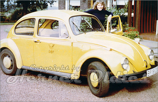 "Die Christel von der Post" - war Barbara Pöhlmann im Jahre 1977. Das Foto ist in Haltern/Westfalen aufgenommen worden und zeigt einen typischen Käfer der Deutschen Bundespost (Baujahr 1970).