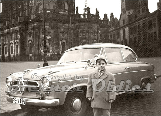 Das Foto, welches uns unser Oldtimer Freund Rainer Burg aus Herne zur Verfügung gestellt hat, zeigt eine Borgward Isabella Limousine vor der malerischen Kulisse der Dresdner Semper Oper im Jahre 1958. Das Fahrzeug ist vom Eigentümer gebraucht gekauft worden und hatte die Farbe hellblau. Es wurde in Dülmen gefahren.