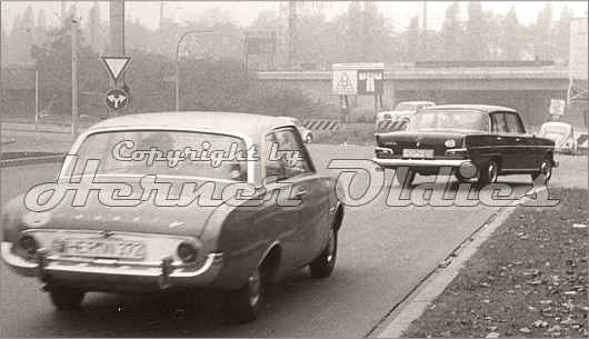 Ein Alltagsbild aus den 60iger Jahren zeigt zwei typische Fahrzeuge der damaligen Zeit in Herne: einen Ford Taunus 17M (Badewanne) sowie einen Mercedes Benz W111 (Heckflosse). Das Bild fand Wolfgang Bruch in einem alten Fotoalbum.