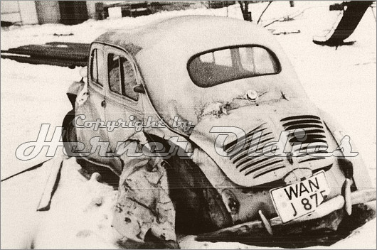 "Ende eines Cremeschnittchens" bedeutet dieser Verkehrsunfall am 14.12.1962 in Herne-Wanne. Eigentümer Karl-Heinz Schneider war mit seinem Renault auf eisglatter Fahrbahn verunfallt. Das Fahrzeug ist danach verschrottet worden.