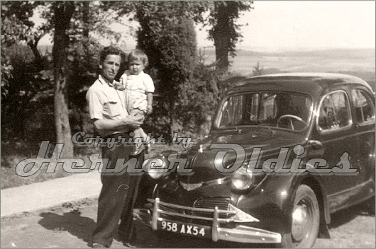 Einen Panhard Dyna X, Farbe weinrot, zeigt dieses schöne Foto aus dem Jahr 1950. Das Fahrzeug war zugelassen im Departement Meurt at Moselle/Frankreich und gehörte dem Vater von Herrn Marceau Peiffert, der es uns freundlicherweise zur Verfügung stellte.