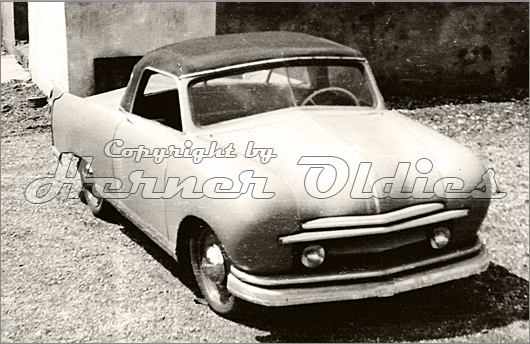 Dieses Foto zeigt einen Prototyp Baujahr Anfang der 50er Jahre. Es könnte sich um ein Fahrzeug aus der Versuchsreihe der Firma Müthing in Herne handeln, die auch den Pinguin gebaut haben. Nähere Einzelheiten liegen allerdings nicht vor. (Sammlung Wolfgang Bruch)