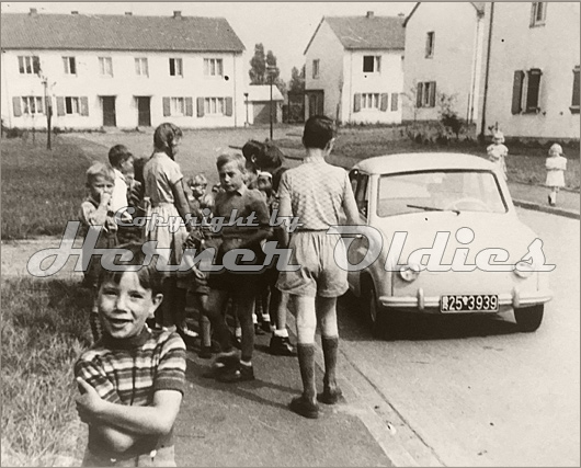 Neubausiedlung, spielende Kinder und Gogomobil – so sah die typische Strassenszenerie Anfang der 50er Jahre in Herne aus. Das Bild entstammt der Sammlung von Wolfgang Bruch.