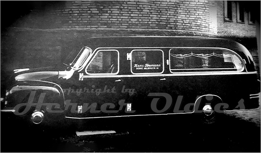 Für dieses Bestattungsfahrzeug der Firma Ikemann aus Herne diente als Basis ein Borgward LKW B1500, der mit einem Sonderaufbau versehen wurde. Das Fahrzeug wurde Anfang der 50er Jahre in Herne genutzt.
