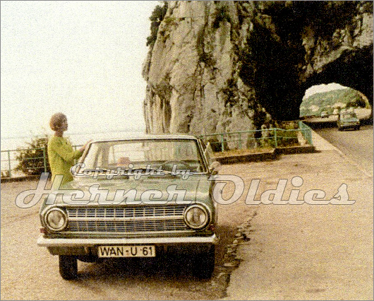 Dieses Foto zeigt eine Urlaubsfahrt nach Südfrankreich Mitte der 60er Jahre mit einem Opel Rekord A Coupé.