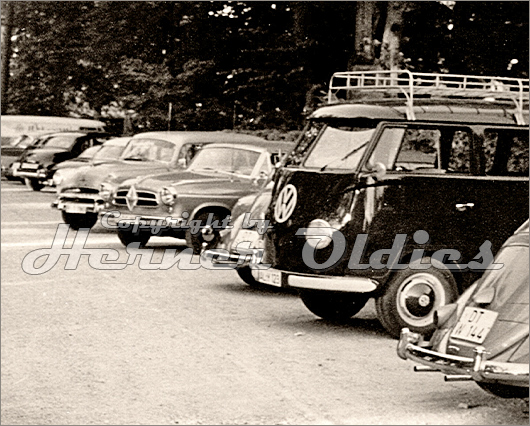 Einen typischen Alltagsparkplatz zeigt dieses Bild aus dem Jahre 1958 in Herne am Gysenberg. Bemerkenswert ist der VW T1 mit Dachgepäckträger.
