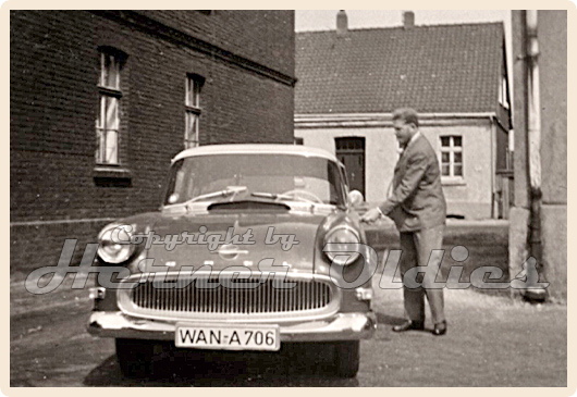 Dieses Foto aus Anfang der 60er Jahre zeigt einen Opel Rekord P1 in einer Zechensiedlung in Wanne-Eickel.